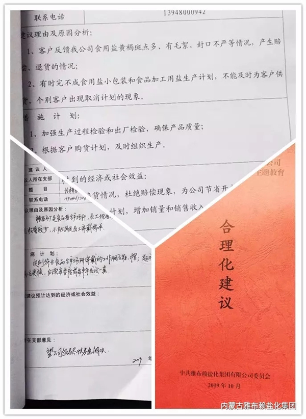 截止目前,共收到涉及生产工艺、生产设备改进;加强劳动防护、技能培训;提高销售人员素质;提升物资供应质量;强化基层党建;保障职工权益等方面的合理化建议32条,公司主题教育领导小组办公室已原原本本将其反馈公司党政,下一步公司党委将认真研究收到的合理化建议,对符合公司实际,近期内能组织实施的建议,尽快予以实施,对近期内无法实施的建议,列入2020年工作计划或企业中长期发展规划,待时机成熟时再予以实施。 |